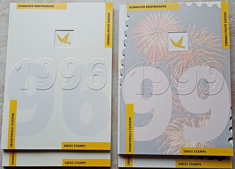 B736 | Schweiz | 4 Jahrbücher 1996-1999 ... postfrisch**... Jahreszusammenstellungen aller postfrischen Marken wie verausgabt ... alle Marken unter Schutztaschen ... Beschreibungen ... alle Bücher in sehr guter Erhaltung ... lohnend |