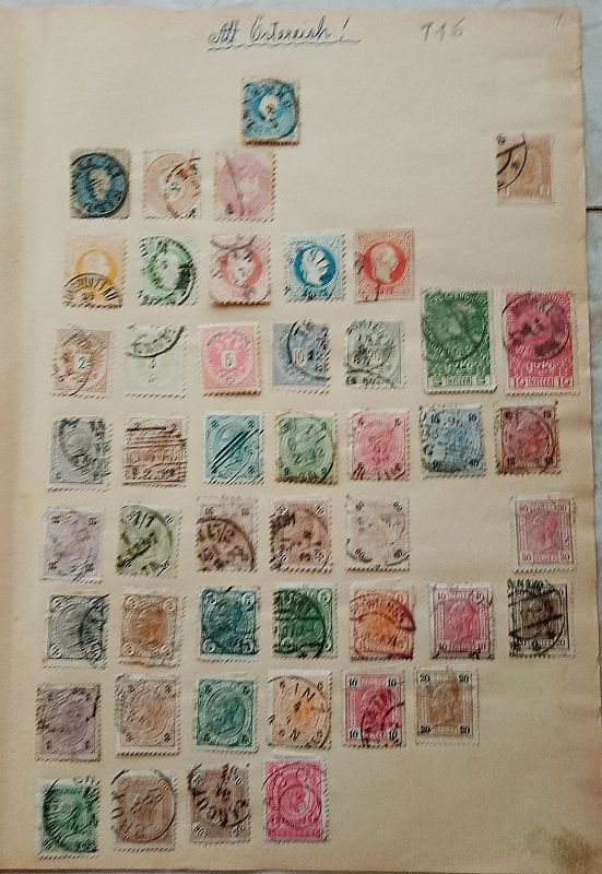 | B770 | Welt | viele alte und interessante Marken ... meist gestempelt° ... u. a. Österreich, Norwegen, Dänemark, Frankreich, Spanien, England, Japan, USA ... in 3 Uralt-Alben ... hoher Katalogwert ... FUNDGRUBE | 129,00 |