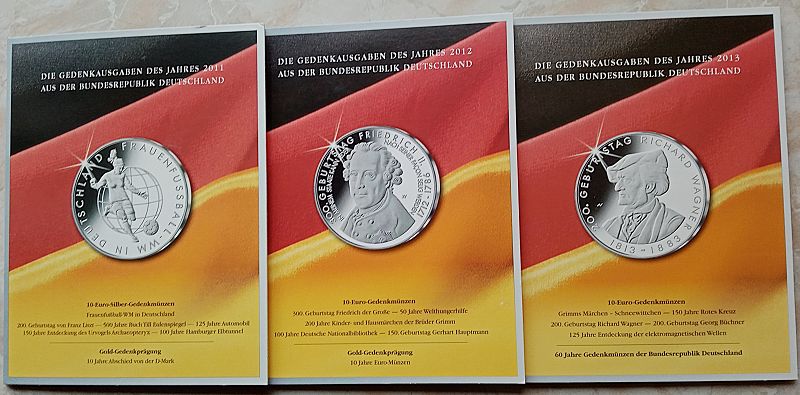 | M285 | B R D | Gedenkmünzen ... 16x 10 Euro aus 2011 bis 2013 ... Franz Liszt 2011 - 625/1000 Silber - 16 g ... 15x Kupfer/Nickel - je 14 g aus 2011-2013 ... Ø alle Münzen 32,5 mm ... Stempelglanz (st) ... in Originalblistern je mit Zertifikat und Beschreibung |