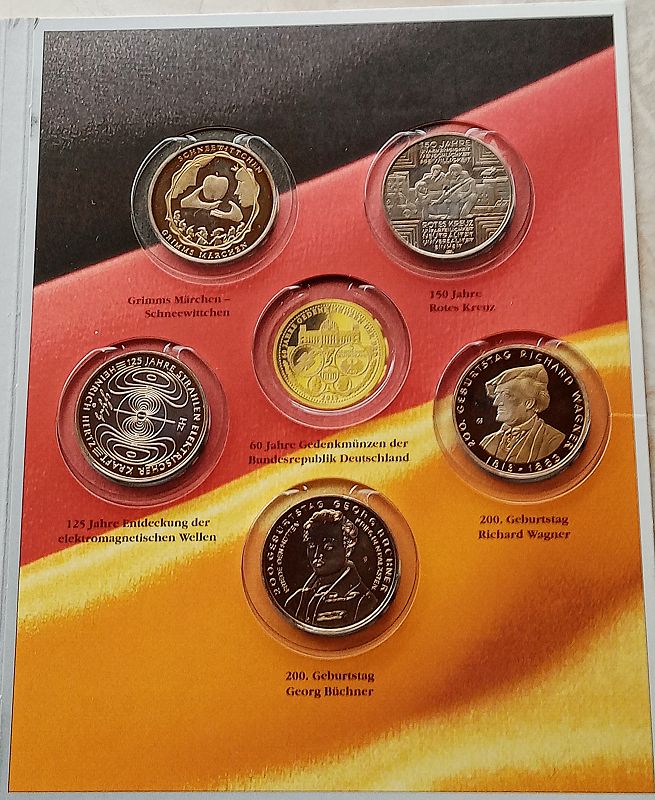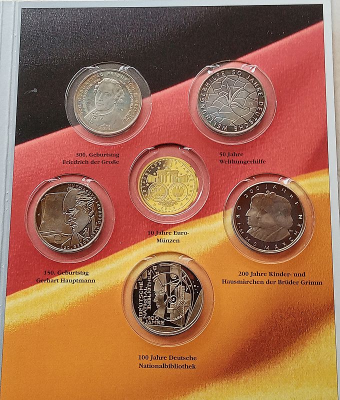| ME79 | Medaillen | Farbmünzen ... 10 diverse Farb-Gedenkprägungen ... verkapselt mit 6 Zertifikaten ... u. a. Obama, Benedict, Helmut Schmidt, Sigmund Jähn, Olympics Athen 2004 |