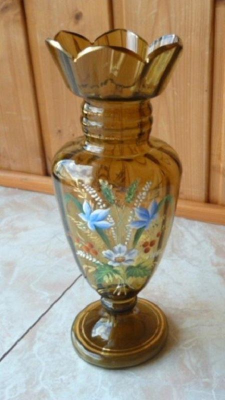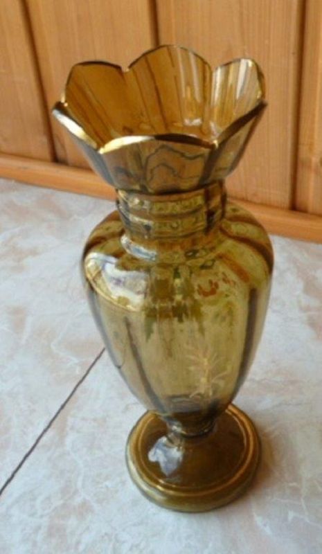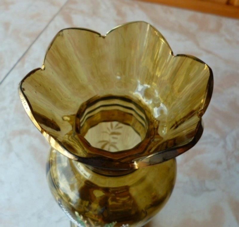 Antike Vase aus Glas - dekorative Blumenmotive - Goldrand - Höhe ca. 22 cm ...
