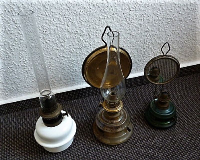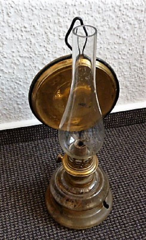 3 antike Petroleumlampen ... mit Messingreflektor und Glaszylinder - Höhe ca. 35 cm/
