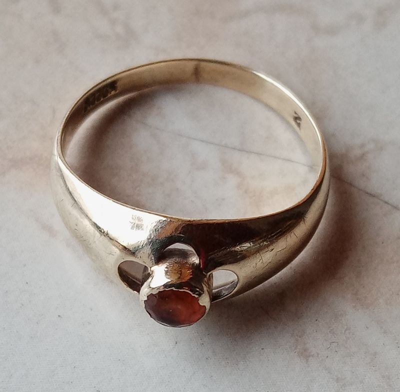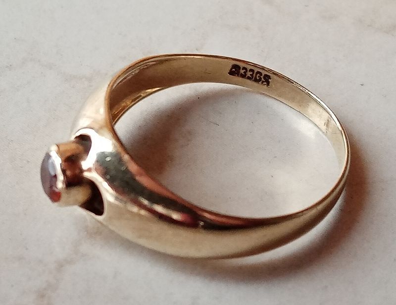 Goldener Damenring ... 333-Gold - gepunzt ... mit 1 roten Stein verziert ...