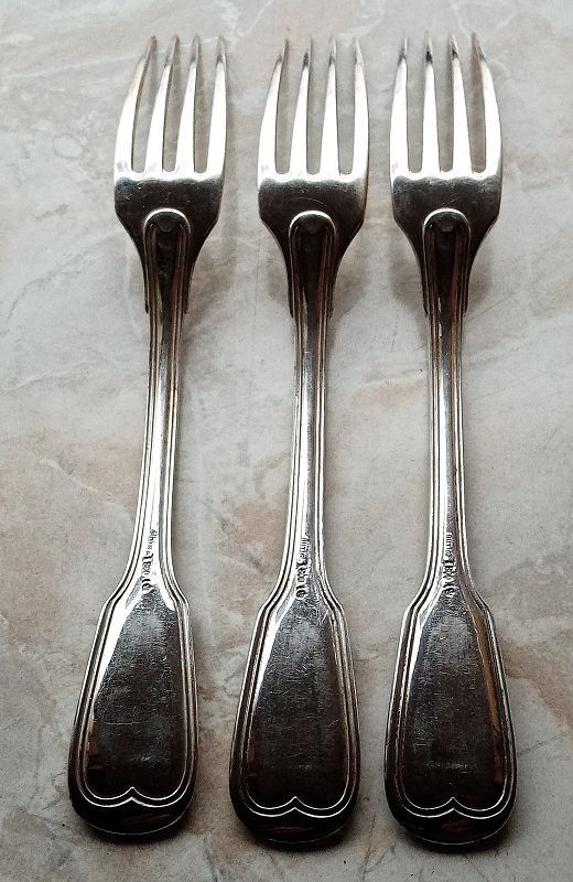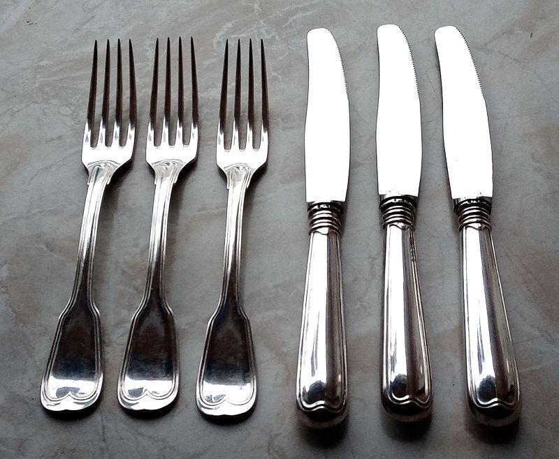 Konvolut aus 800-Silber ... 3 Gabeln + 3 Messer ... Gabeln Gewicht ca. 245 g, Länge ca. 20 cm ...