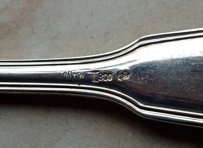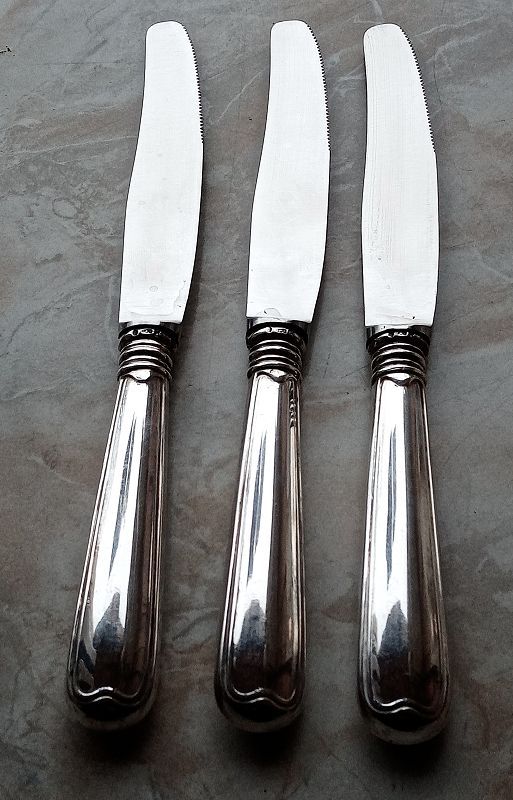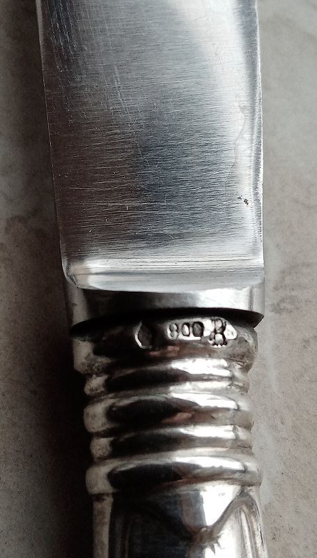 Messer Griff aus 800-Silber, Klingen Edelstahl mit Wellenschliff ... Silber-Gewicht ca. 105 g (ohne
