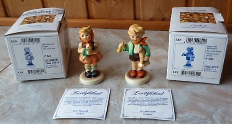 Mädchen mit Puppe 239/B - plus Junge mit Holzpferd 239/C - je ca. 9 cm - 1. Wahl -
