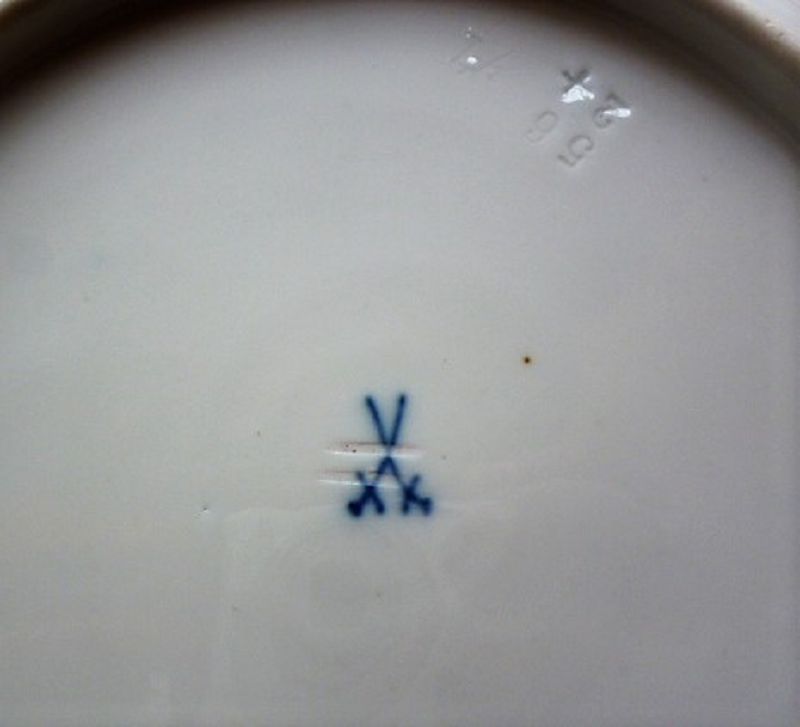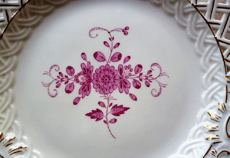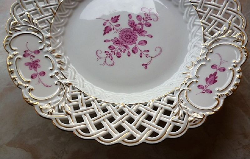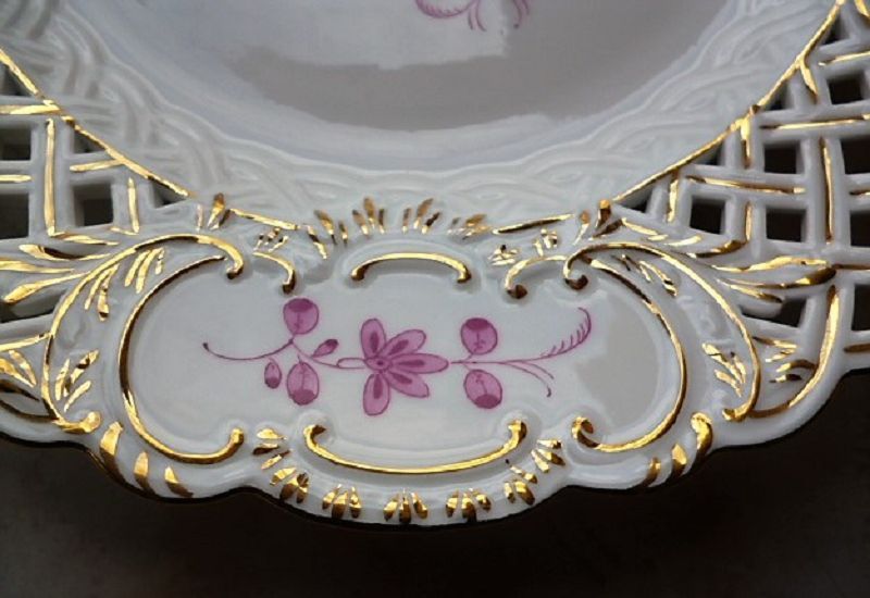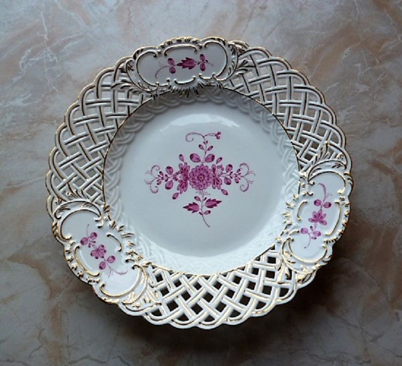 Antiker Meißner Teller/Durchbruchrand um 1900 ... Indisch Purpur, Goldverzierung ...