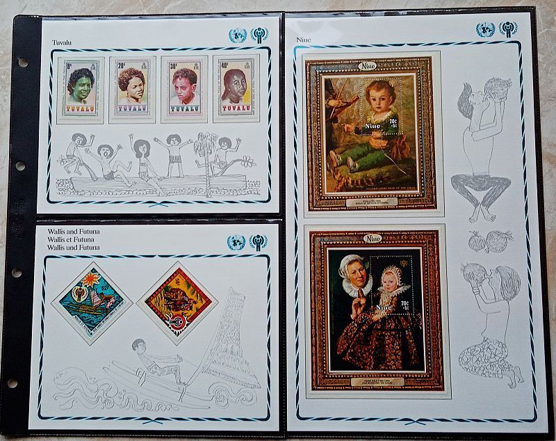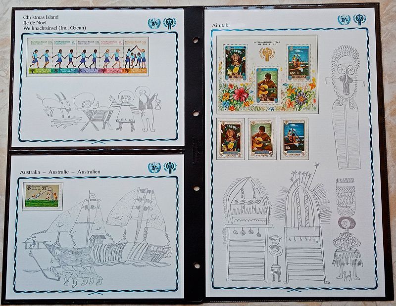 Briefmarkensammlung UNICEF ... Jahr des Kindes 1979 ... ca. 200 Ausgaben - postfrisch** + Briefmarkenkatalog Jahr des Kindes 1979 ... in 2 Alben unter Schutztaschen auf Schmuckblättern ... tolle Gestaltung