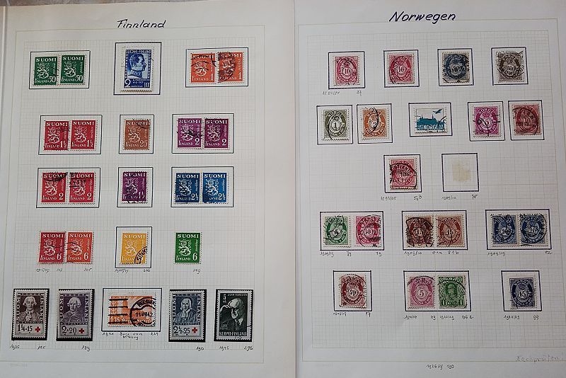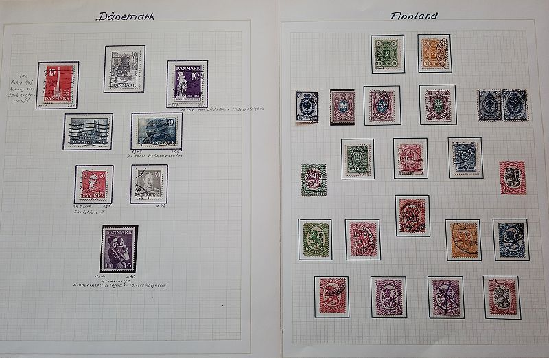 Uralt - Sammlung vor 1900 bis ca. 1950 ... Dänemark - Finnland - Norwegen - Schweden ... überwiegend gestempelt° ... viele uralte Marken mit interessanten Stempeln ... auf Blanko-Blättern ... lohnend