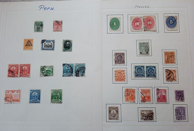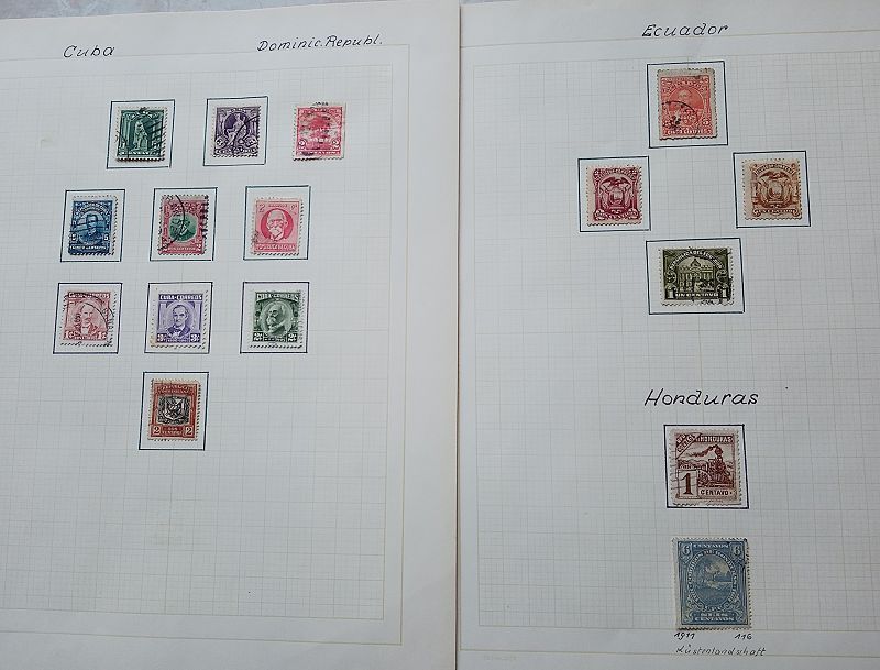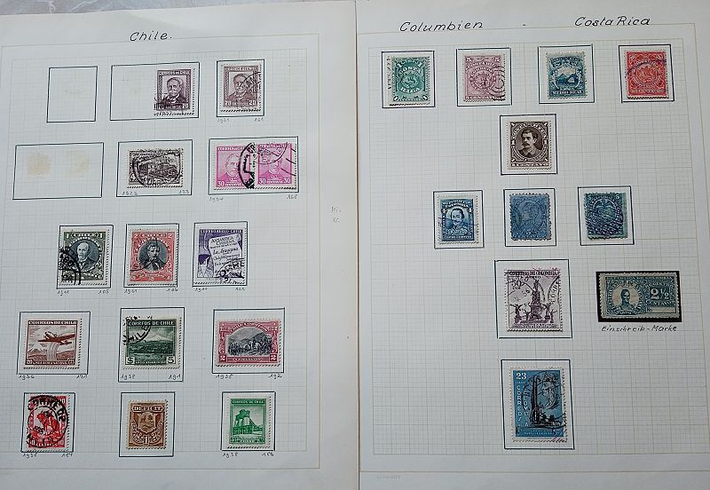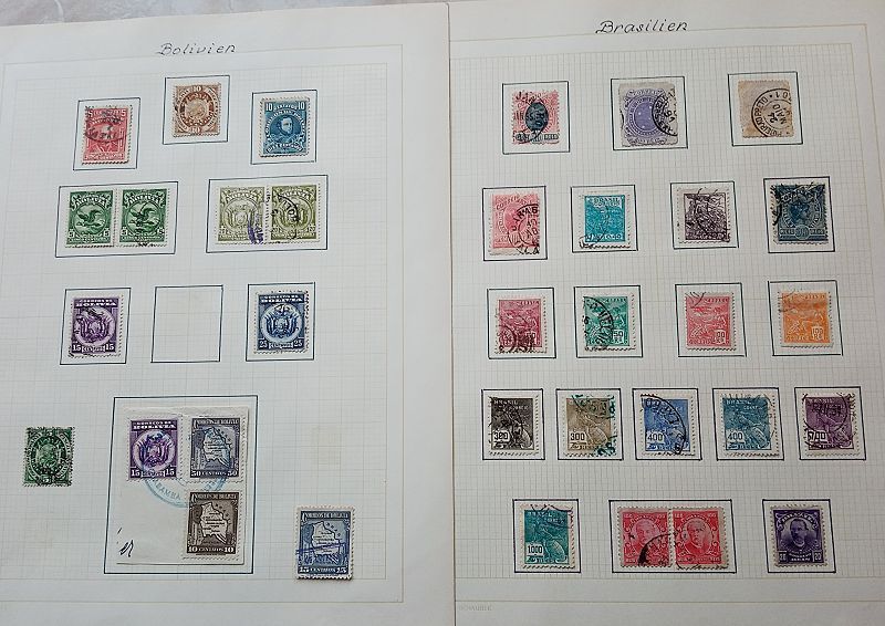 Uralt - Sammlung ... meist gestempelt° ... viele gute Marken ... u. a. Argentinien, Bolivien, Brasilien, Canada, Chile, Columbien, Costa Rica, Cuba, Ecuador, Honduras, Guatemala, Paraguay, Peru, Mexiko, Venezuela ... auf Blankoblättern