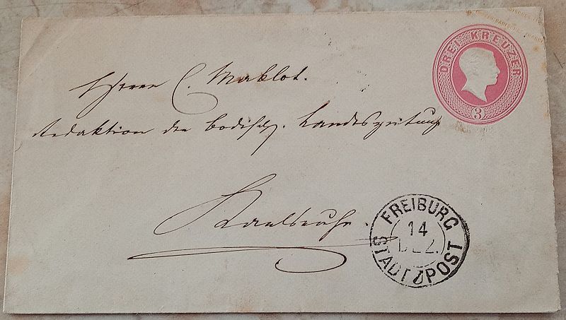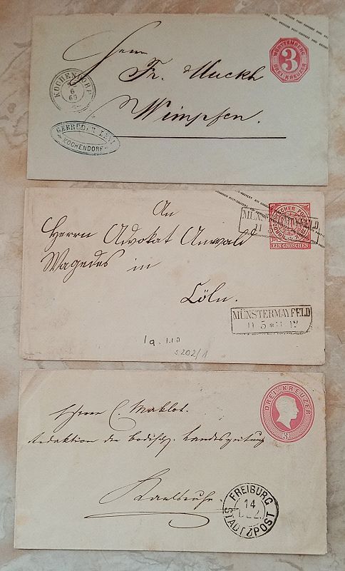 3 uralte Ganzsachen - Briefe ... mit interessanten und wertvollen Stempeln ... Württemberg - Drei Kreuzer 1869 + Norddeutscher Postbezirk - Ein Groschen ... Stadtpost Freiburg - Drei Kreuzer ... alle Briefe in guter Erhaltung