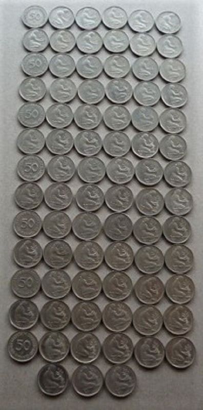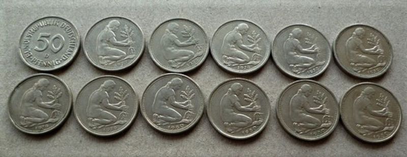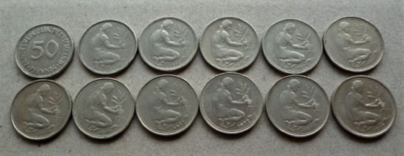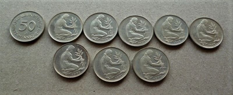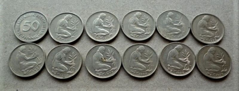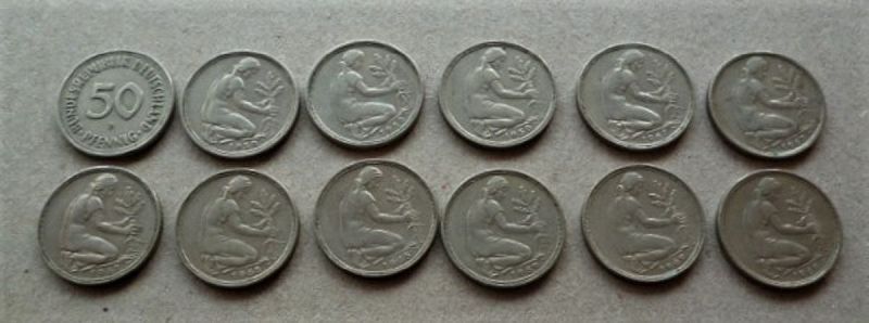 Sammlung von 81x 50 Pfennig aus 1950-1991 ... Kupfer/Nickel, je 3,5 g, Ø 20 mm, vz ...