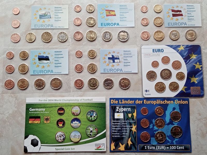 Kursmünzensätze ... 8x KMS ... San Marino 2006, 2008, 2009 (gemischt), Spanien 2011,