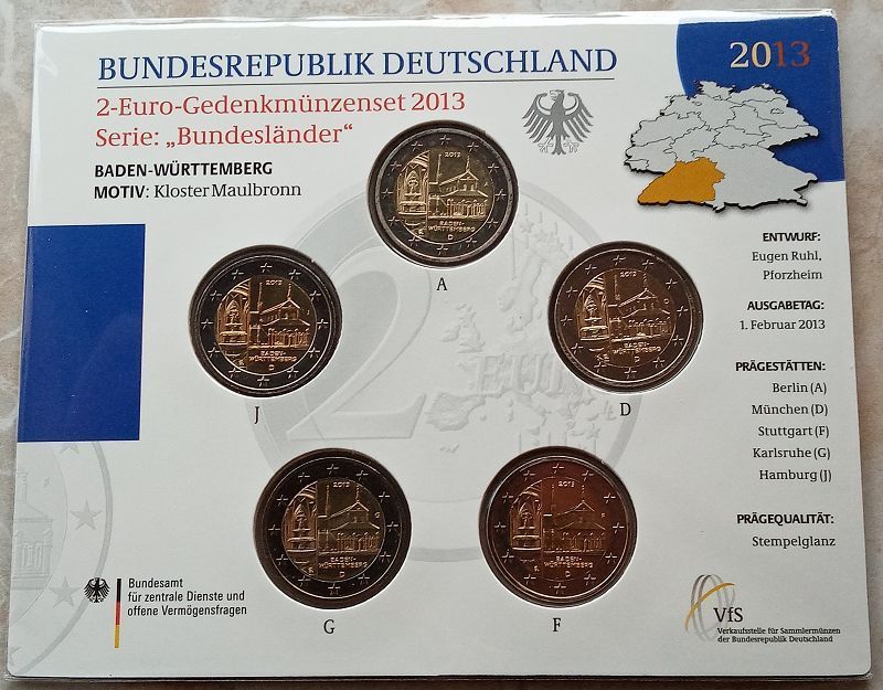 je 5x 2 Euro Gedenkmünzen BRD 2013 + 2014