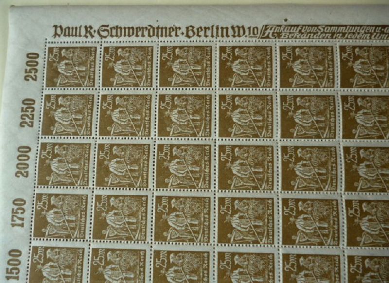 B402 | Dt. Reich | 20 originale Bogen 1923 ... Freimarken Mi 273 - 1.000 Mark ... postfrisch** ...sehr gute Erhaltung ... Originalumschlag mit entsprechenden Stempeln | 99,00 |