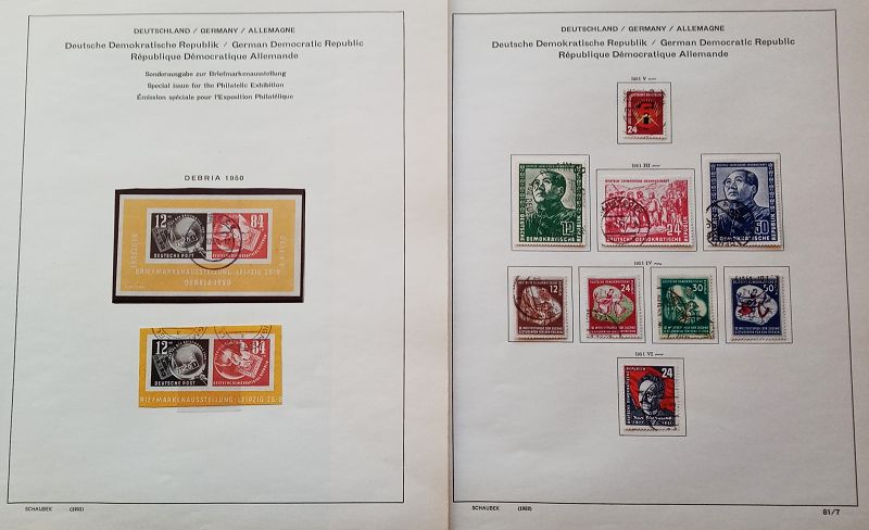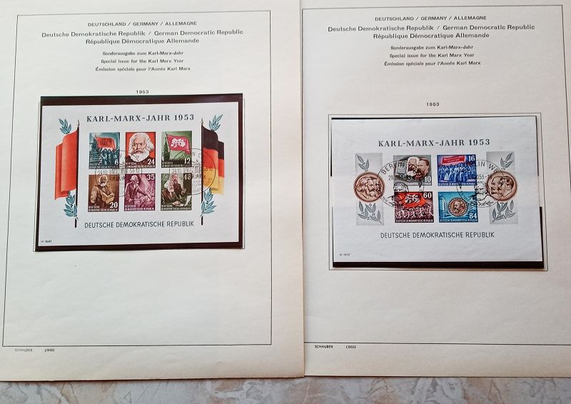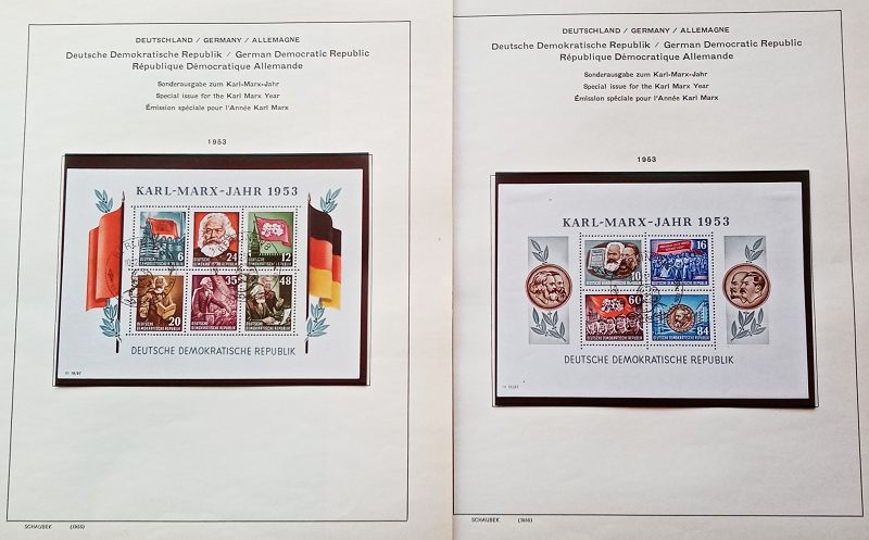 B605 | D D R | Sammlung aus 1949-1990 ... gestempelt° ... incl. viele Blöcke, u. a. Karl-Marx-Blöcke Mi.-Nr. 8 A/B, 9 A/B, Debria-Block Mi.-Nr. 7, Persönlichkeiten Mi.-Nr. 327-341 ... in 3 Vordruckalben ... hoher Katalogwert ... lohnend | 349,00 |