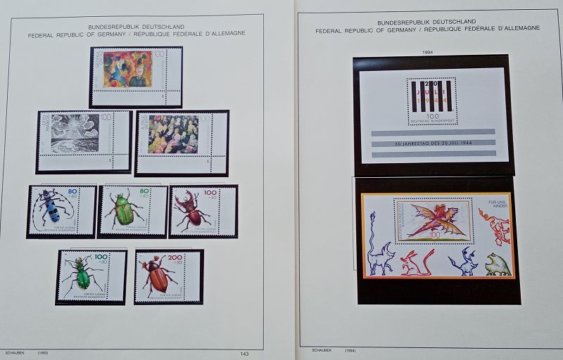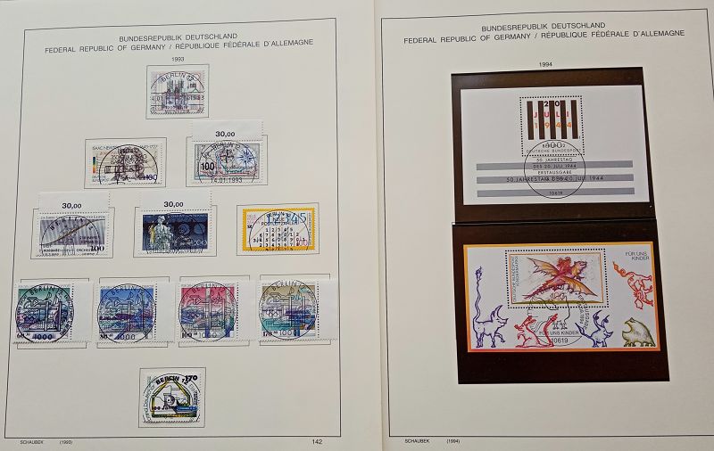 B506 | B R D | Sammlung aus 1990-2000 ... postfrisch** und gestempelt°... viele Marken mit Randstück, Blöcke, Kleinbogen, Briefe, Ersttagsblätter, Sonderpostkarten ... in 2 Schaubek-Alben unter Schutztaschen ... hoher Katalogwert | 149,00 |