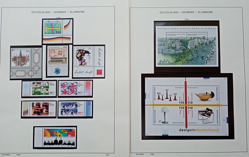 B639 | B R D | Sammlung aus 1990 bis 2001 ... postfrisch** ... viele Marken mit Randstück, viele Blöcke, Markenheftchen ... im Schraubbinder auf Schaubek - Vordruckblättern unter Schutztaschen ... hoher Katalogwert |