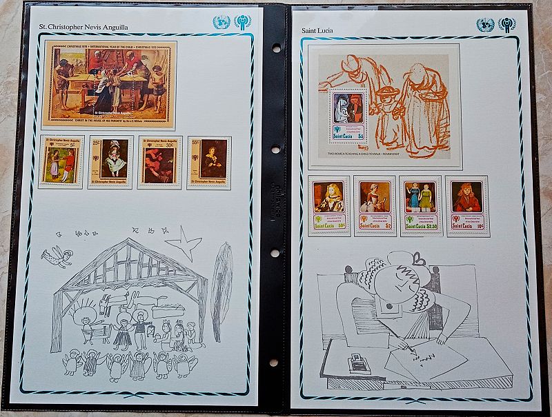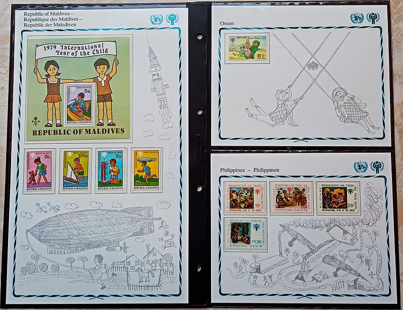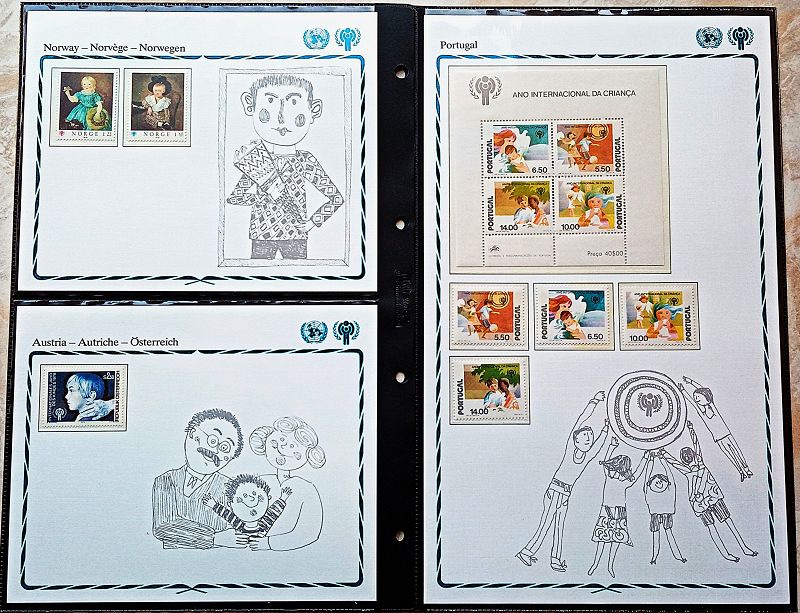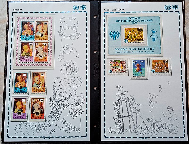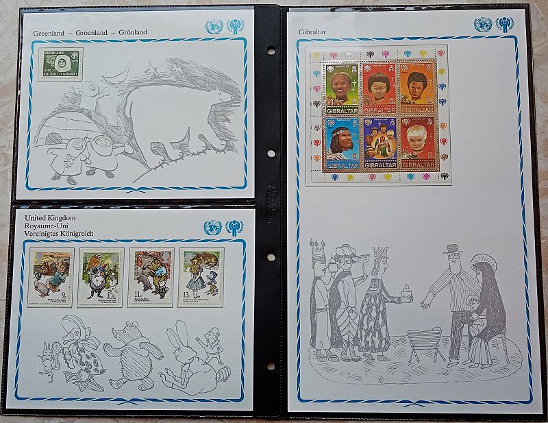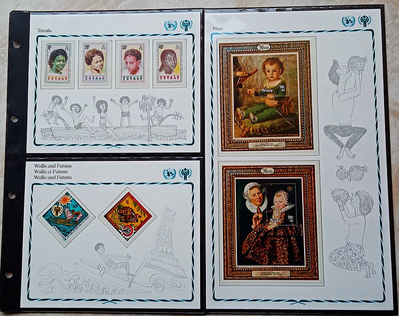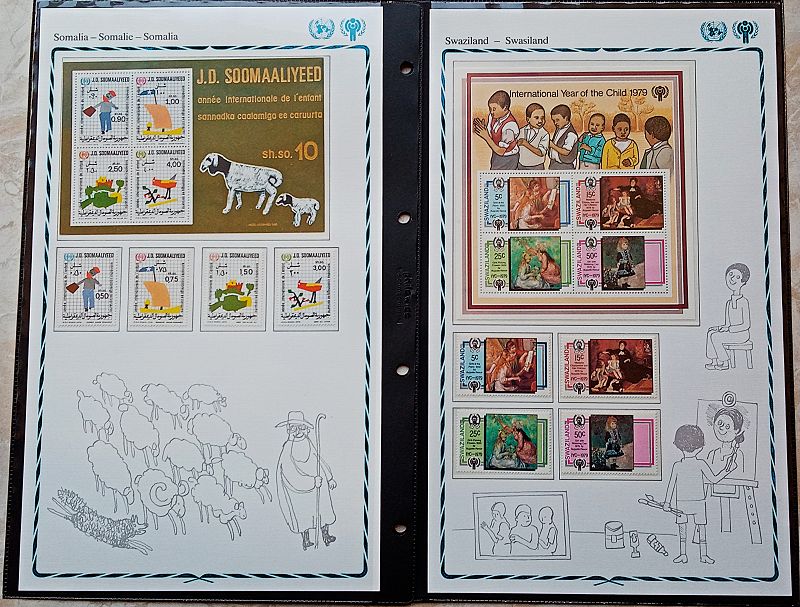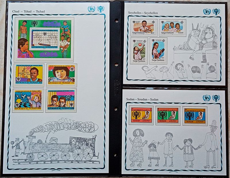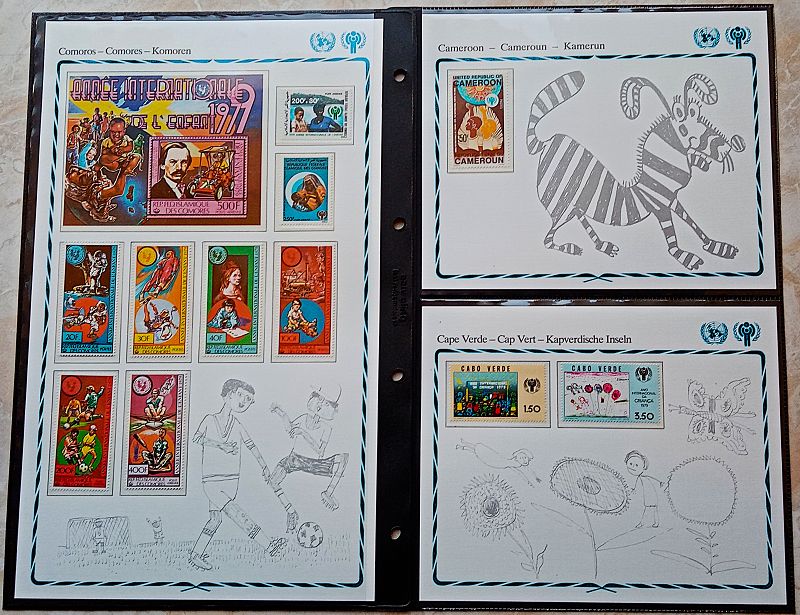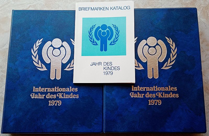 B681 | Motive | Briefmarkensammlung UNICEF ... Jahr des Kindes 1979 ... ca. 200 Ausgaben - postfrisch** + Briefmarkenkatalog Jahr des Kindes 1979 ... in 2 Alben unter Schutztaschen auf Schmuckblättern ... tolle Gestaltung | 99,00 |