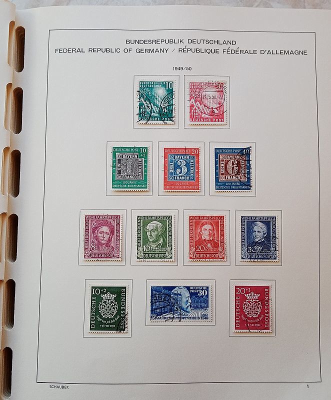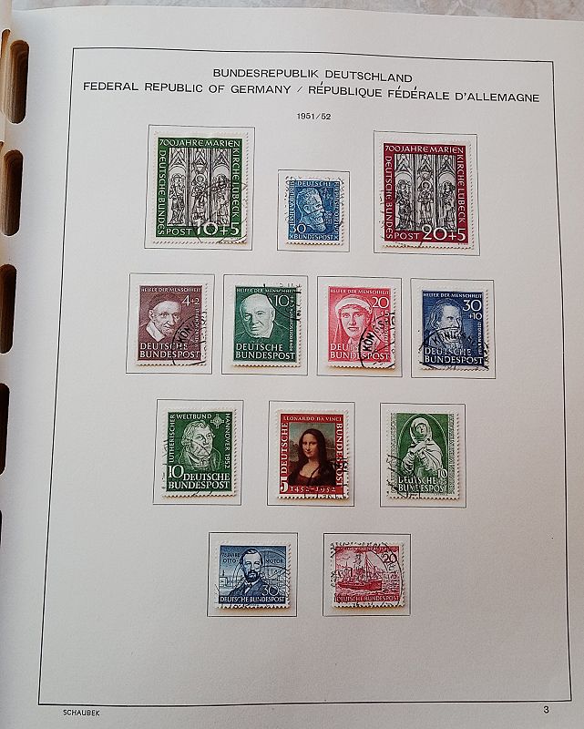 B699 | BRD | Sammlung aus 1949 bis 2003 ... gestempelt° ... u. a. Mi 113-115 - 100 Jahre Dt. Briefmarke, Mi 117-120 - Helfer der Menschheit, Mi 139-140 - Marienkirche Lübeck, incl. viele Markenheftchen ... sehr saubere Sammlung in 2 Alben |